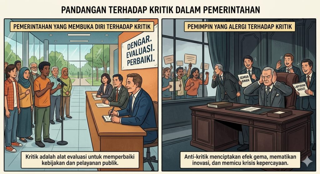 Di sisi lain, munculnya fenomena pemimpin yang resisten atau “alergi” terhadap kritik memicu kekhawatiran serius. Sikap anti-kritik dinilai dapat menciptakan efek gema (echo chamber), di mana pemimpin hanya dikelilingi oleh laporan-laporan yang menyenangkan telinga saja, sehingga kehilangan sentuhan dengan realitas di lapangan.