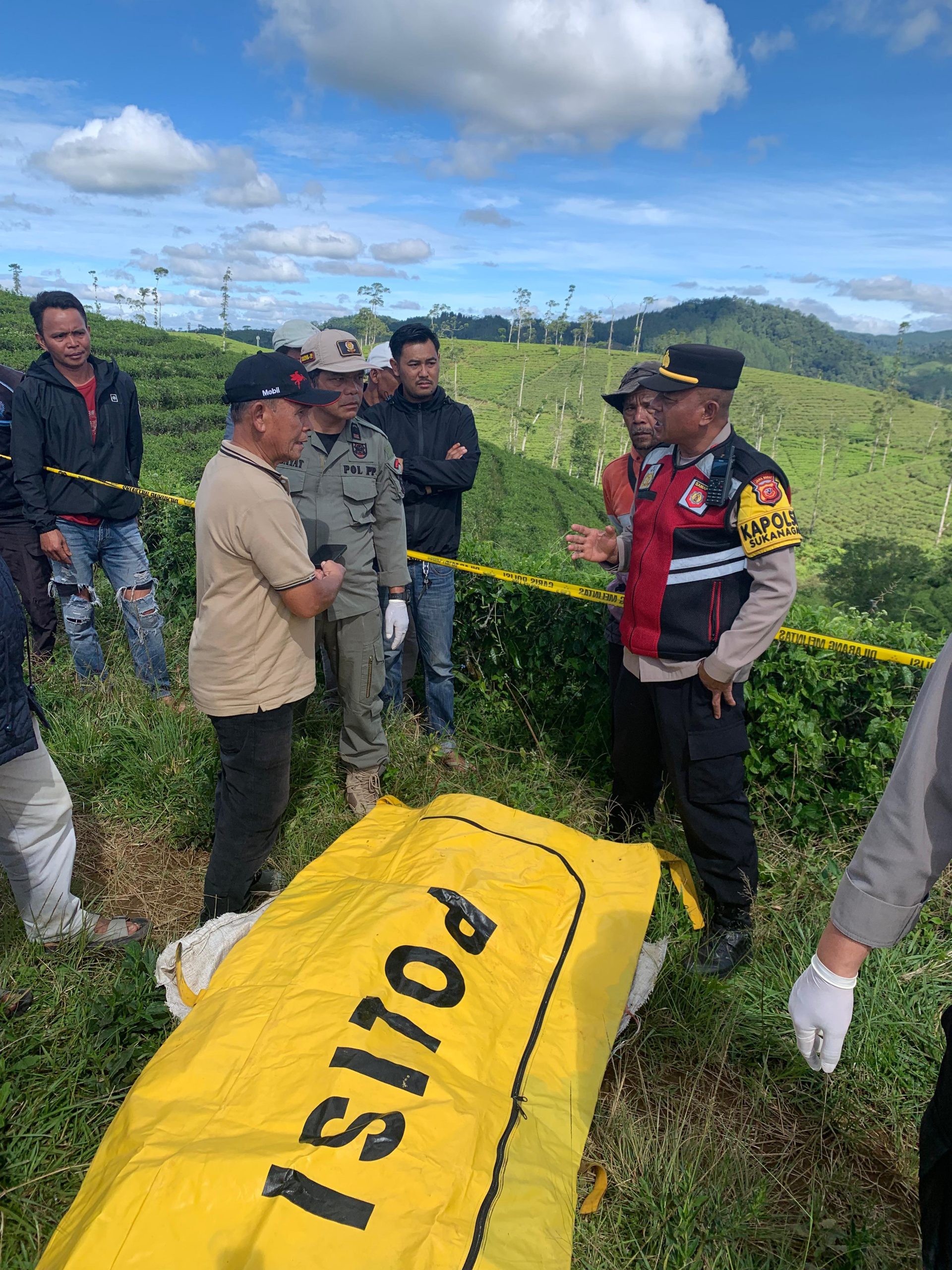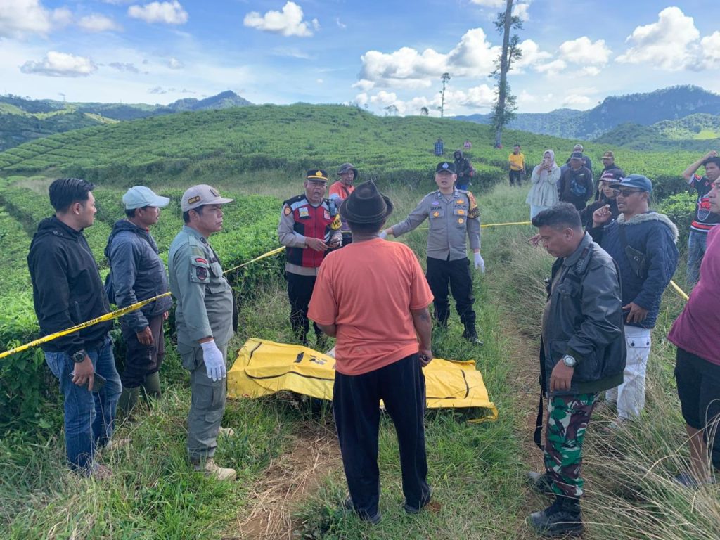 Penemuan mayat tersebut pertama kali dilaporkan oleh Dani Nurdani (44), seorang petani sekaligus mandor perkebunan. Saat itu, ia tengah melakukan kontrol rutin di area perkebunan. Dari kejauhan, saksi melihat benda menyerupai terpal berwarna biru yang biasa digunakan sebagai alas penampung teh.
