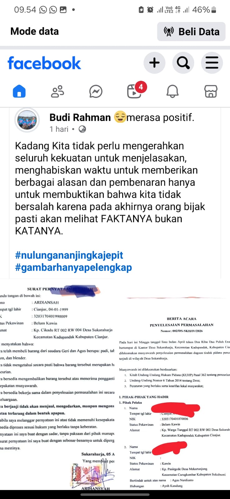 Beritapantau.com||Sukaraharja — Masyarakat Desa Sukaraharja bersama sejumlah insan media menyampaikan keprihatinan mendalam atas unggahan di media sosial yang dilakukan oleh Kepala Desa Sukaraharja, Budi Rahman, yang dinilai mengandung narasi tidak pantas dan berpotensi menyinggung perasaan warga.
