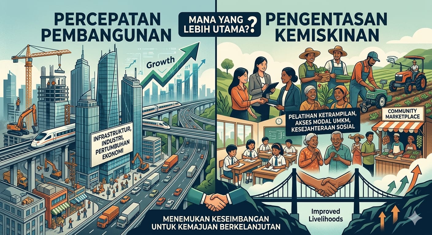 Persoalannya, percepatan pembangunan fisik seringkali justru menjadi beban bagi warga kelas bawah. Alih-alih mendapatkan manfaat, mereka seringkali terpinggirkan oleh gentrifikasi atau kehilangan mata pencaharian akibat alih fungsi lahan. Inilah yang menciptakan jurang: infrastrukturnya melesat ke masa depan, tapi kesejahteraan rakyatnya masih terjebak di masa lalu.